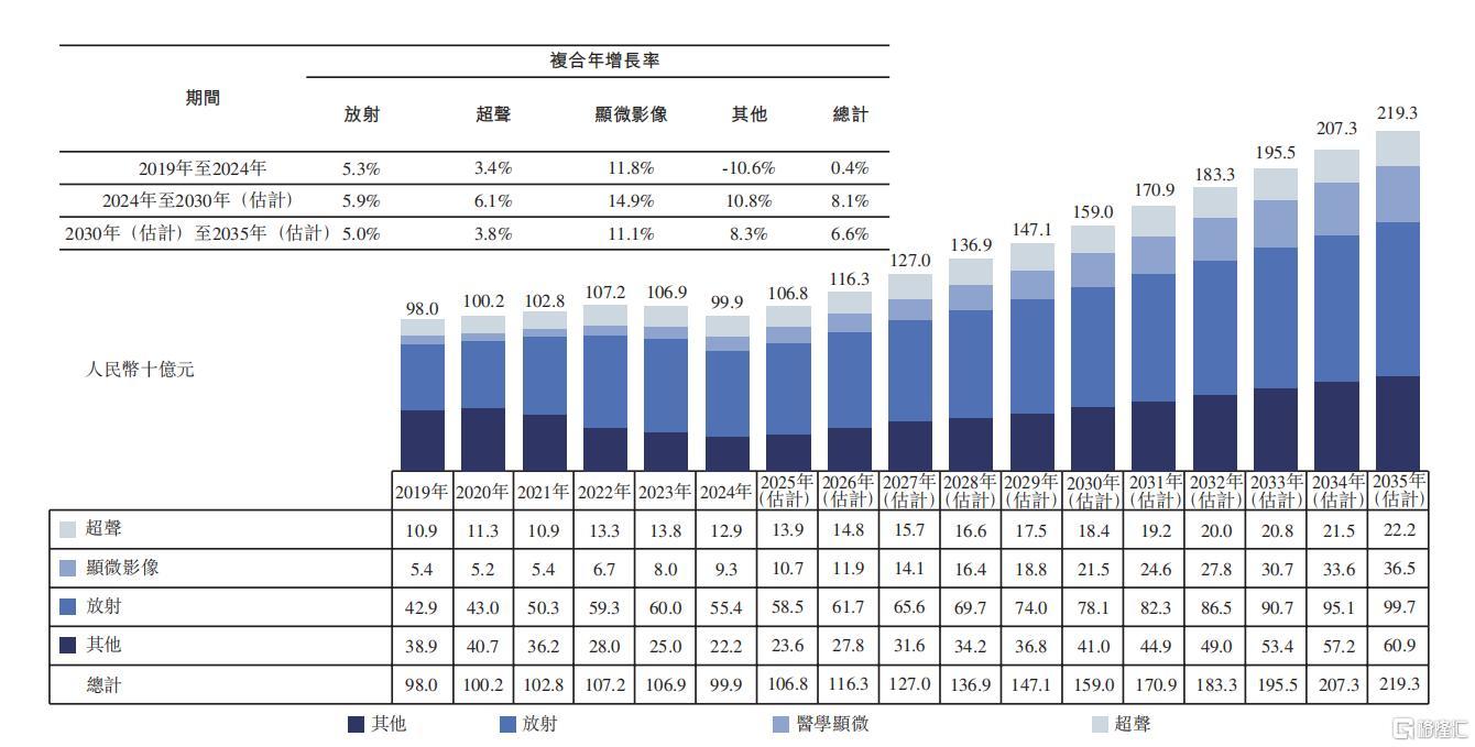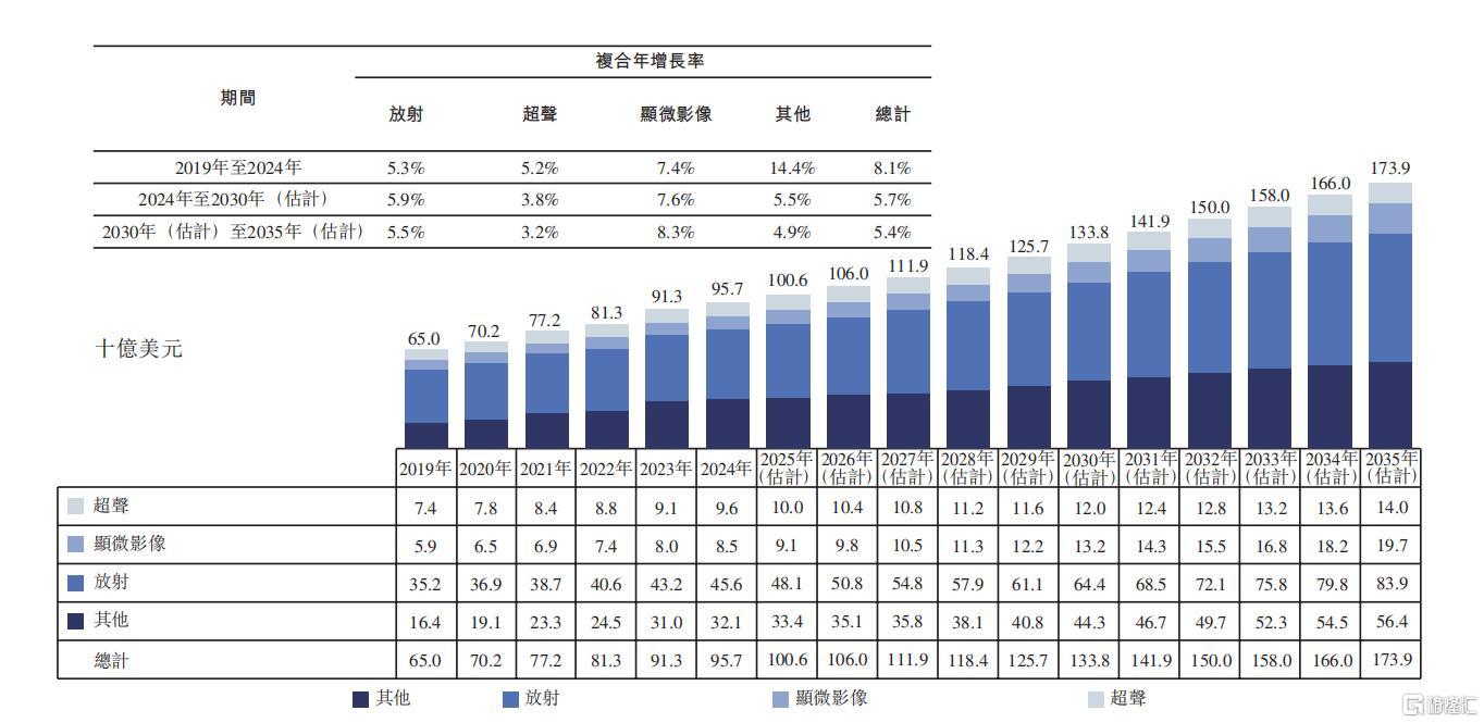 图:全球医学影像检测市场规模(按领域划分),2019年至2035年(估计)